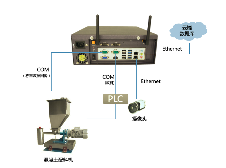 混凝土配料机通过COM口实时反馈下料数据信息至CES-2D11-A240
